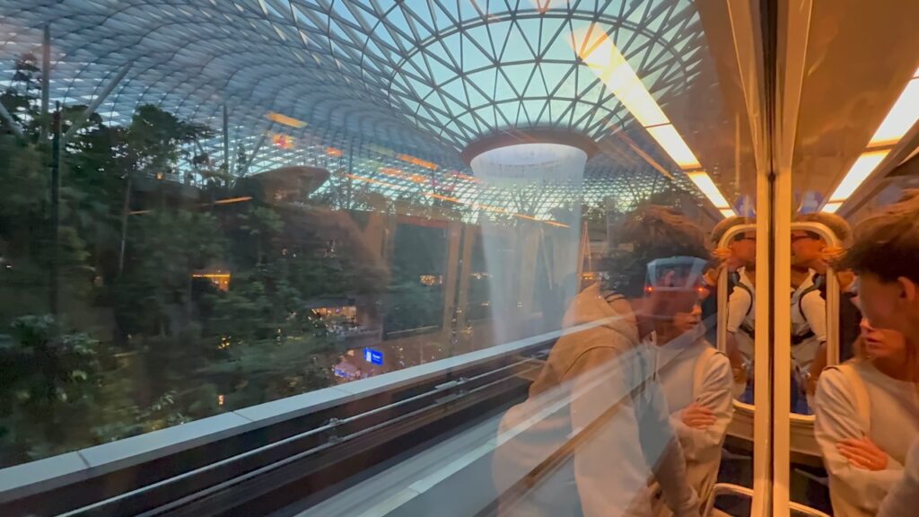 以上が短時間でJewelを楽しむルートの一例です。さらに時間がない超タイトな場合の裏技として、どうしても滝を見たいけど入国する時間がない…というときは、実は空港内の無料モノレール(スカイトレイン)からチラッとJewelの滝を見ることもできます。ターミナル2~3間を結ぶスカイトレインの一部路線がJewelの内部を通過しており、車窓から滝を眺められるんです(短い一瞬ですが雰囲気は味わえます)。とはいえガラス越しで停車はしないので、本当に「見るだけ」の緊急手段。やはり可能であれば入国して直にJewelを体験するのがベストです。時間と相談しつつ、自分に合った方法でJewel観光を楽しんでくださいね。