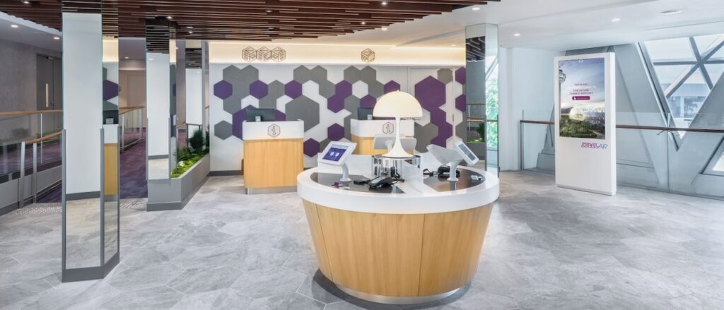 ジュエル4階にあるヨーテルエア(YOTELAIR)入口。チャンギ空港で仮眠できるホテルとして真っ先に名前が挙がるのが「ヨーテルエア(YOTELAIR)シンガポール チャンギ空港」です。ヨーテルはイギリス発のコンパクトホテルチェーンで、2019年にチャンギ空港内の大型商業施設ジュエル内にオープンしました。場所はターミナル1に直結するジュエルの4階(ランドサイド)で、利用するには一度シンガポールに入国する必要があります。日本人であれば観光目的の入国はビザ不要なので問題ありませんが、乗り継ぎで時間が短い場合や入国審査に不安がある場合は後述のトランジットホテル系サービスを使う方が良いでしょう。