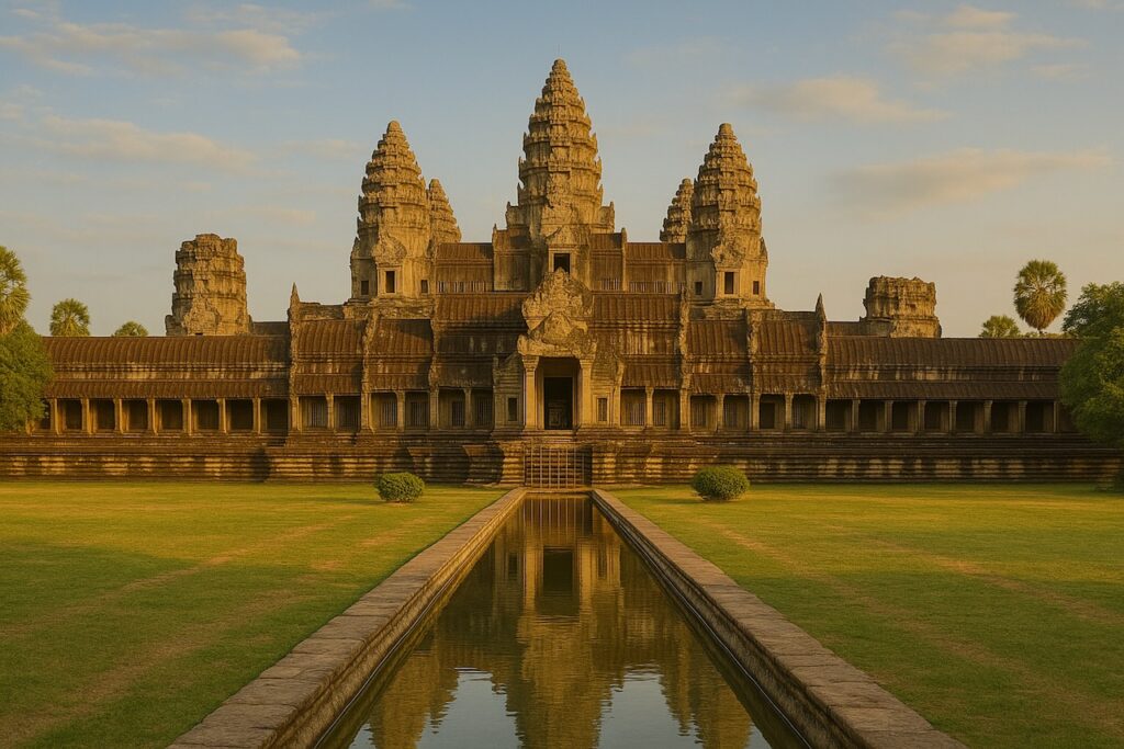 日の出鑑賞: 聖池に映るアンコールワットのシルエット、「影ワット」は絶対に外せないフォトスポットです。早朝、暗闇の中をトゥクトゥクで向かう時間は、旅の思い出として強く残ります。